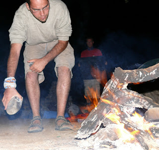 De dode bomen van Deadvlei zullen we nooit zien. De weg die we nog moeten afleggen is te lang en we moeten op tijd het park uitzijn, dus vertrekken we, na hout gesprokkeld te hebben, terug naar de camping. We steken weer een kampvuurtje aan, halen nog wat bier in de bar en “genieten” van een kom soep en een portie noodles. Midden in de nacht begint het te motregenen of misschien beter gezegd, wordt de mist zo dicht dat hij neervalt. Roy kruipt in de auto, en Filip ook na een tijdje want door de gaten in z’n slaapzak (er zijn gensters van het kampvuur op gesprongen) is die helemaal doorweekt door het water.